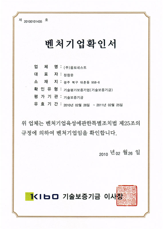 인증 | 벤처기업확인서 페이지 정보 작성자 관리자 작성일10-10-15 09:20 조회19,994회 댓글0건 관련링크 이전글 다음글 목록 본문 벤처기업확인서 댓글목록 등록된 댓글이 없습니다. 이전글 다음글 목록