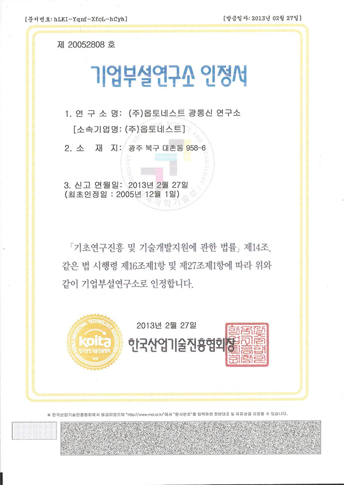 인증 | 기업부설연구소 인정서 페이지 정보 작성자 관리자 작성일13-05-23 09:28 조회19,636회 댓글0건 관련링크 이전글 다음글 목록 본문 기업부설연구소 인정서 댓글목록 등록된 댓글이 없습니다. 이전글 다음글 목록